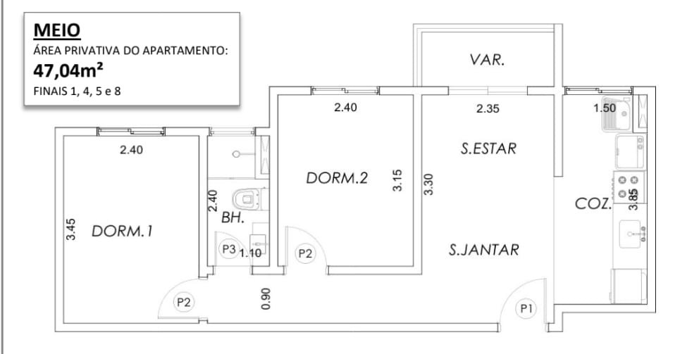 - Área Privativa: 47 m²