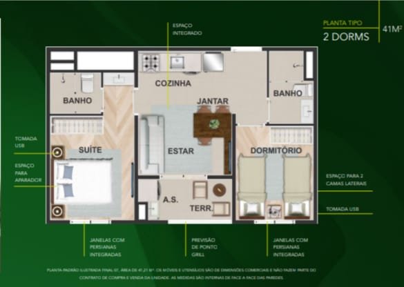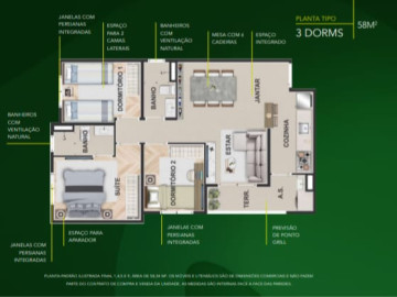Itens de Lazer: Bicicletário, Mini Market, Lockers, Salão Gourmet, Coworking, Brinquedoteca, Salão de Festas, Academia, Salão de Jogos e Espaço Beleza, 2 Churrasqueiras, Piscina Adulto, Piscina Infantil, Sauna, Quadra, Redário, Praça da Fogueira, Ping-pong, Playground, Espaço Aplicativo