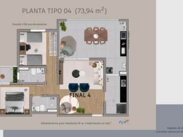 Opções de apartamentos de *2 quartos sendo 1 suíte 70m² à 80m².