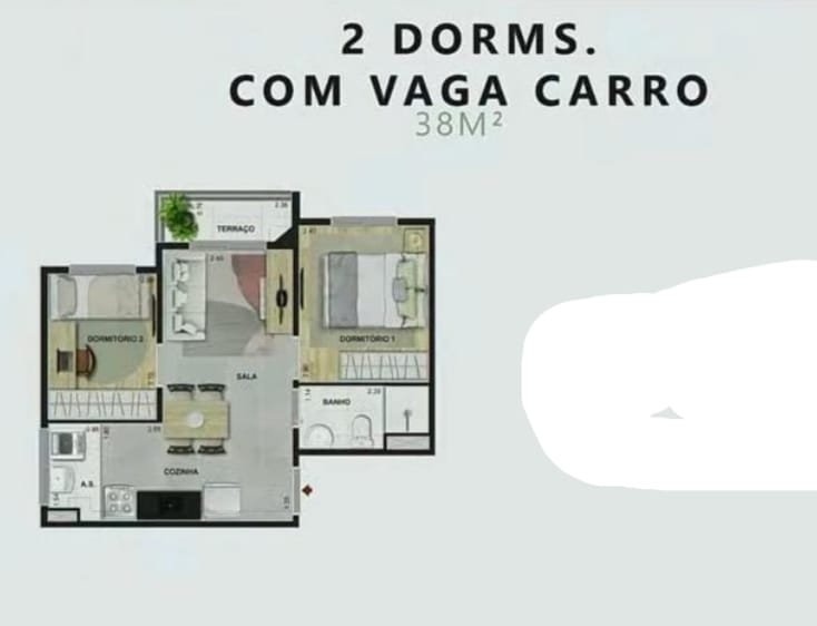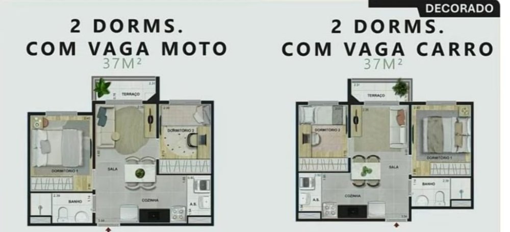 Plantas com 2 dormitorios, 34 m² a 38 m², Opções Com Terraço e Vaga de Garagem em um condomínio com lazer de clube para toda a família. Conheça!